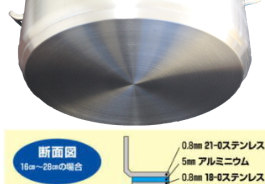 | なべ底に熱効率の高い三層鋼を使用することにより、調理時間が短縮できます。 |